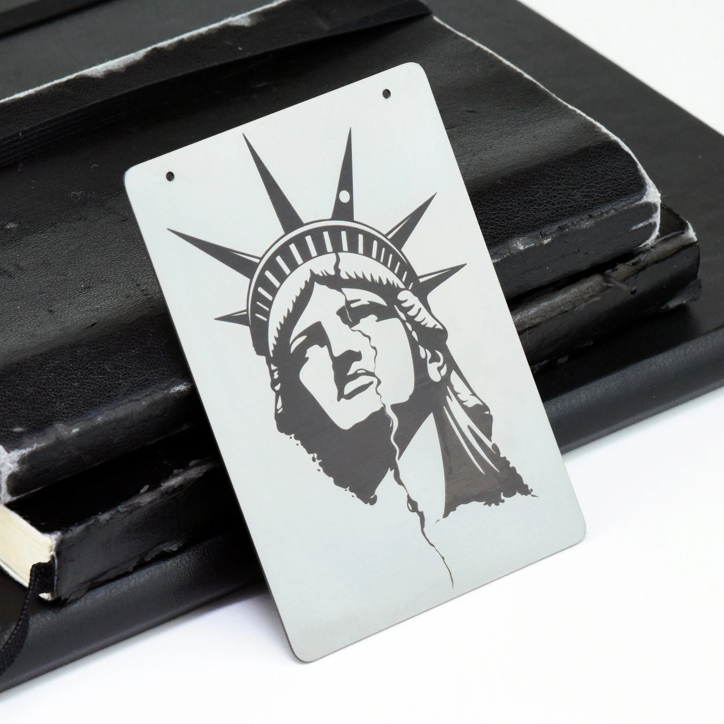 Crafted in anodised aluminium or titanium, LIBERTY presents an enduring symbol of independence, distilled into a precise and permanent expression. The graphic is not applied, but engraved into the surface — embedded within the material itself — ensuring a clarity and permanence that will not fade over time.